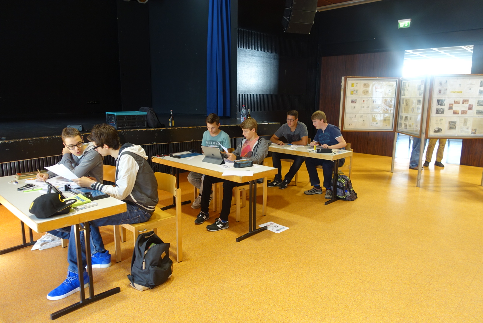 Hier sehen wir die Mannschaften beim Stationen-Wettbewerb, bei dem Philatelistisches Wissen zu zeigen ist.