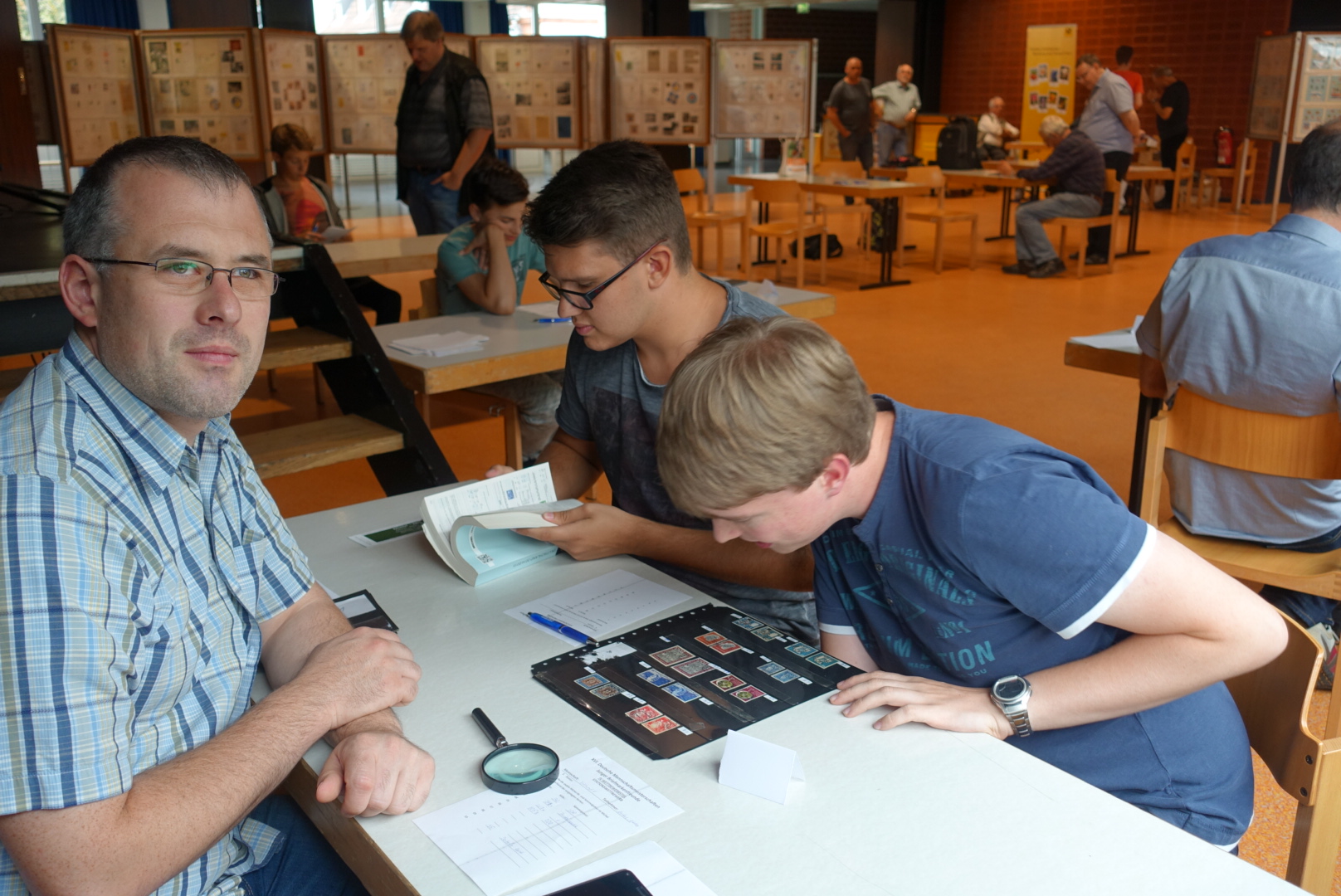 Die JuPhilA 2016, die eine kombinierte Rang 2/Rang 3-Ausstellung, die Deutsche Mannschaftsmeisterschaften, den Stiftungswettbewerb und eine Feierstunde zum Jubiläum "60 Jahre Deutsche Philatelisten Jugend e.V. beinhaltete, gehört nun der Vergangenheit an. Für alle, die nicht nach Mainz kommen konnten, will ich hier in den nächsten Tagen ein paar Bilder und Informationen einstellen. Beginnen will ich mit der Deutschen Mannschaftsmeisterschaft, die räumlich in die Ausstellung integriert war. Auf dem ersten Bild sehen wir die Betreuer der Gruppen bei ihrem Wettbewerbsteil.