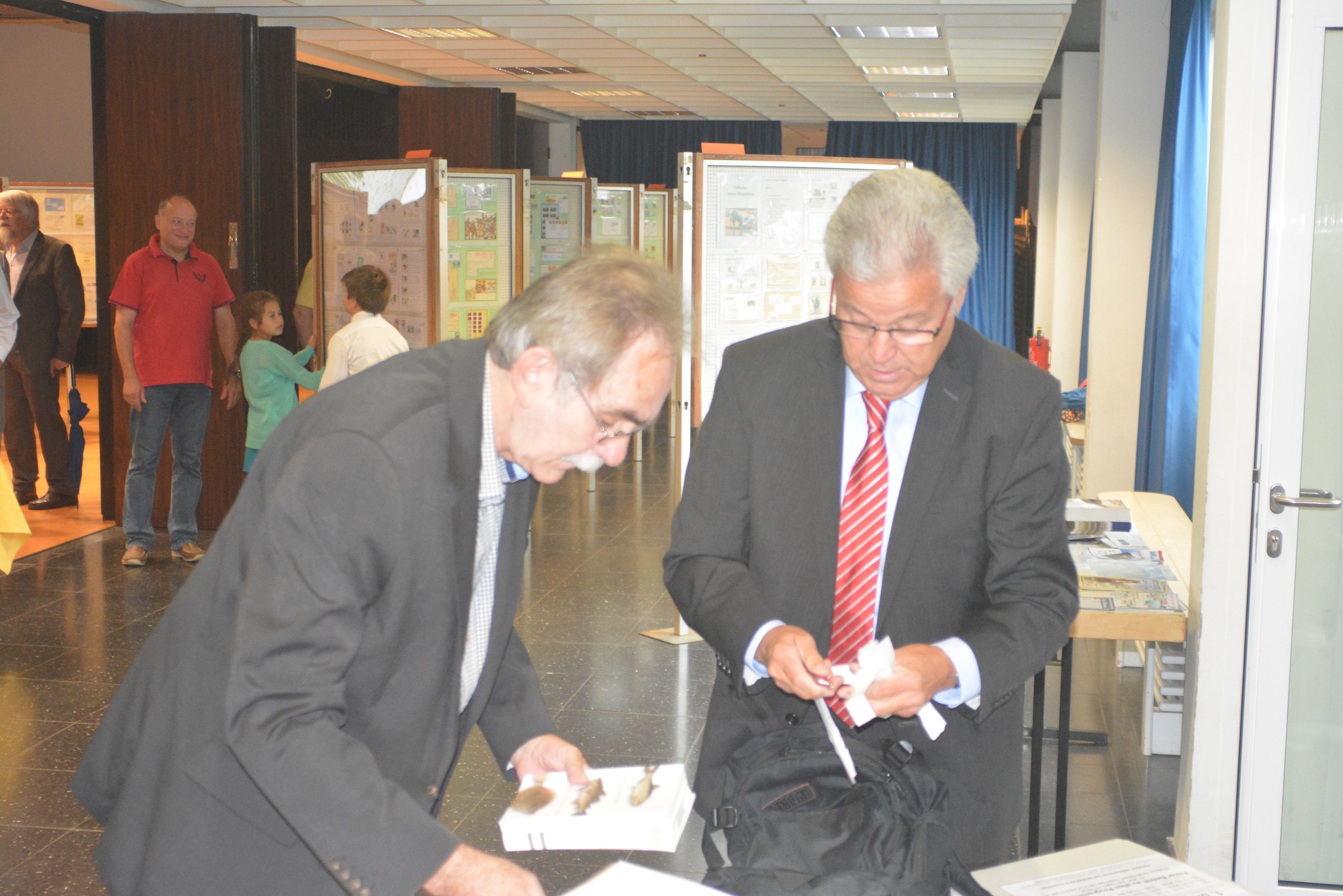 Am Sonntag 1.9.2016 fand eine kleine Feierstunde zum 60. Geburtstag der Deutschen Philatelisten Jugend e.V. statt. Die ersten Gäste sind eingetroffen und werfen einen Blick in die Dokumentation der DPhJ e.V.