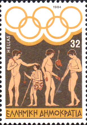 Auf der letzten Marke dieser Serie Griechenlands ist ein Antikes Stadion in Athen zu sehen. Außerdem wird ein Porträt von Dimitrios Vikelas, (geb. 15. Februar 1835 in Ermoupolis, Syros; gest. 20. Juli 1908 in Athen)gezeigt. Er war ein griechischer Geschäftsmann und Literat und erster Präsident des Internationalen Olympischen Komitees von 1894 bis 1896.