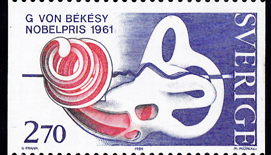 1984 erschien in Schweden in einer Ausgabe mit Marken zu "Nobelpreisträger für Physiologie und Medizin" auch eine Marke (MiNr 1311) zum Nobelpreis für Georg von Békésy. Im Markenbild wird ein Innenohr dargestellt, passend zur Erforschung der Umformung von Schwingungen in elektrische Signale durch Georg von Békésy.