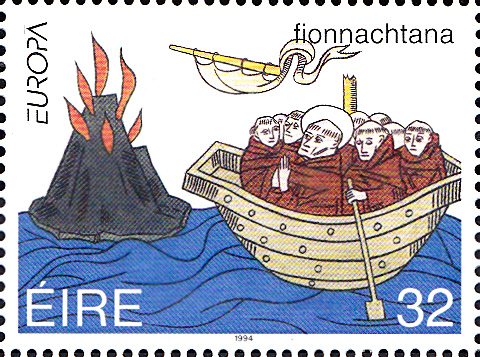 In Irland erschienen die Europamarken 1994 zum Gemeinschaftsthema "Entdeckungen und Erfindungen" am 18. April 1994 mit Darstellungen zu den Seereisen des hl. Brendan (6. Jh., irischer Mönch) nach Holzschnitten. Hier der Werte zu 32 Pence mit der Darstellung der "Entdeckung Islands". Die Auflage betrug 1 000 000 Stück.