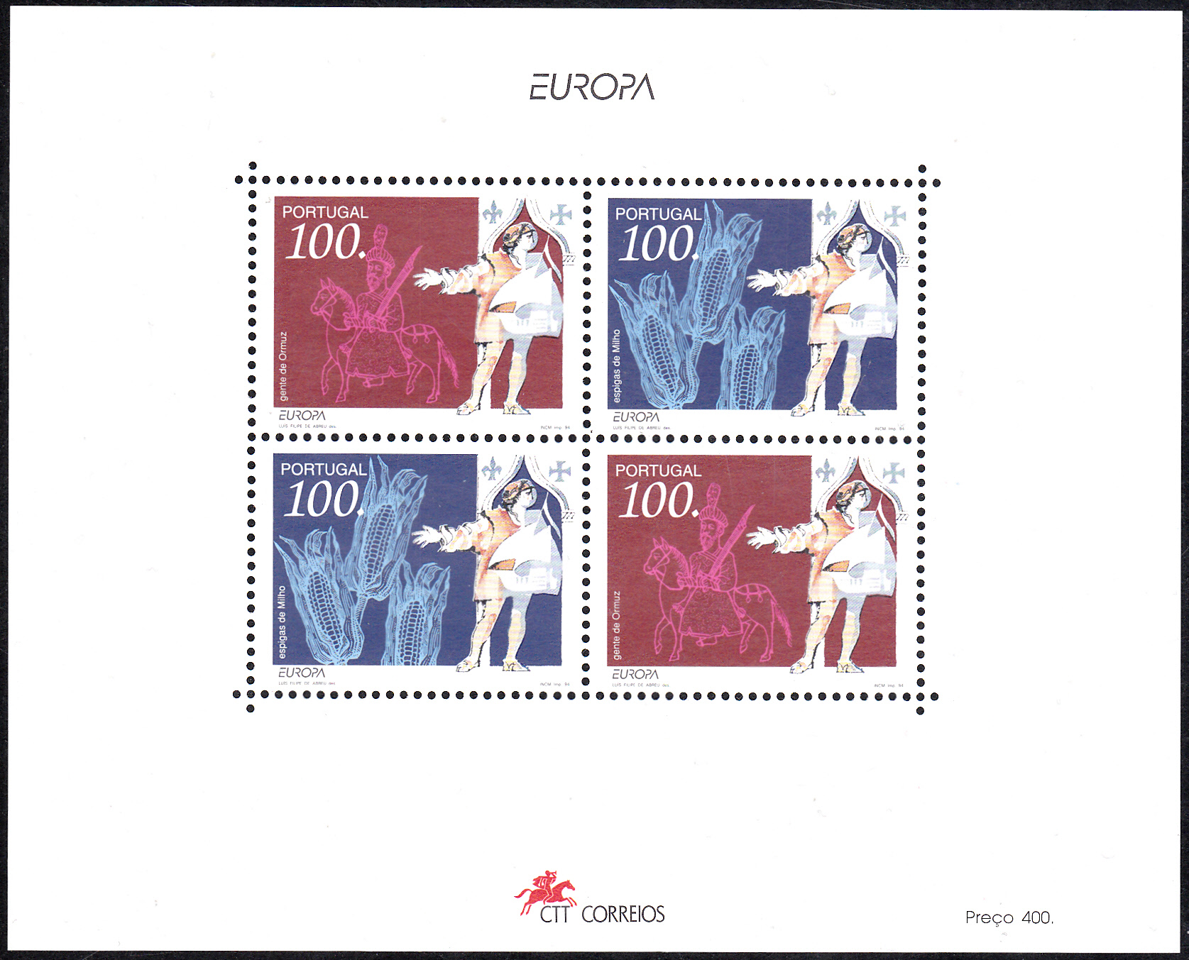 Foren-Übersicht Themen des Monats 2016 Thema des Monats Januar 2016 - EUROPA Europamarken 1993 bis heute unter der Trägerschaft der PostEurop 1994 Portugal MiNr Block 99 - 2 x 100 E + 2 x 100 E