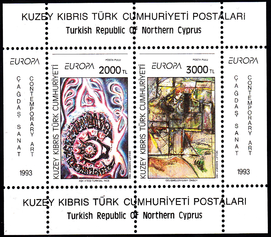 In Türkisch-Zypern erschien am 5. Mai 1993 eine Blockausgabe mit zwei Marken zum Gemeinschaftsthema "Zeitgenössische Kunst". Die Marke zu 2000 Lira (MiNr 363) bildet das Gemälde "Feurige Liebe" von Türksal Ince (*1949) ab und auf der Marke zu 3000 Lira (MiNr 364) ist das Gemälde "Wachstum" von Ilkay Önsoy (*1953) zu sehen.