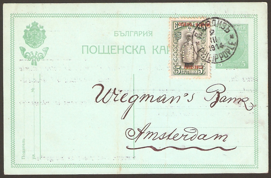 Befördert wurde die Karte am 2.III.1914 von Philippople (Plovdiv) nach Amsterdam.