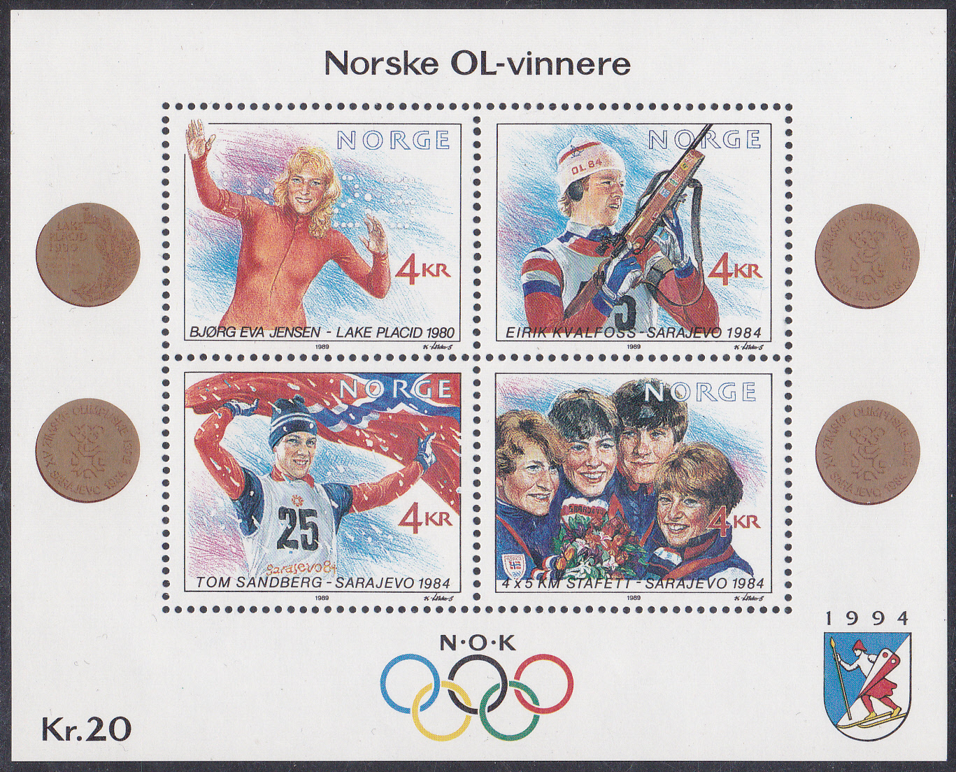 In Norwegen erschien zu den Olympischen Winterspielen 1994 in Lillehammer bereits 1989 eine Marke (MiNr 1030) mit der bei den Winterspielen 1984 in Sarajewo siegreichen 4x5-Damenstaffel aus Norwegen.