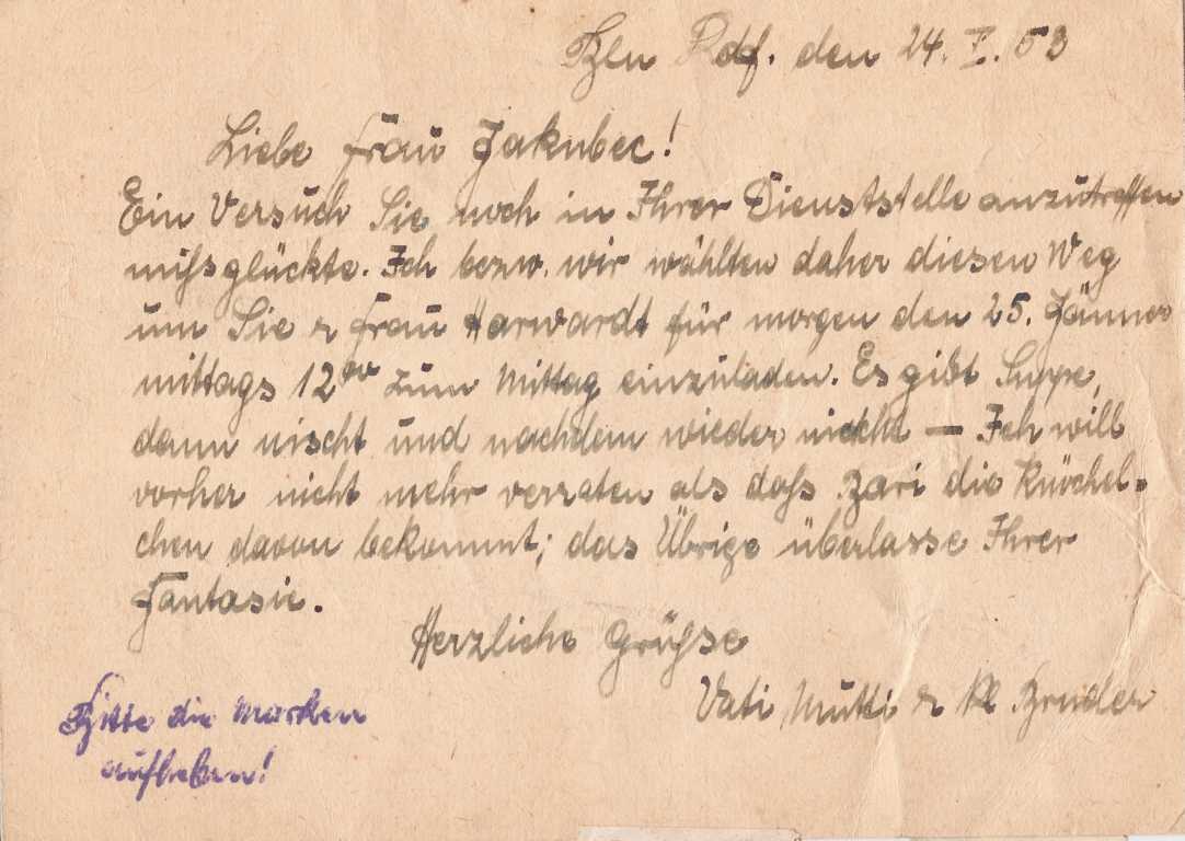 Ist zwar schon ein bisschen länger her, aber vielleicht interessiert es den ein oder anderen. Peter Koegel, Spezialist für die Berliner Rohrpost, teilte mir mit, dass diese Postkarte mit Rohrpost befördert wurde.