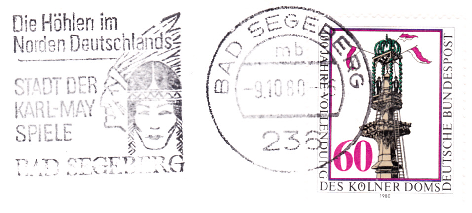 In diesem Maschinen-Werbestempel wird auf die Karl-May-Spiele in Bad Segeberg hingewiesen.