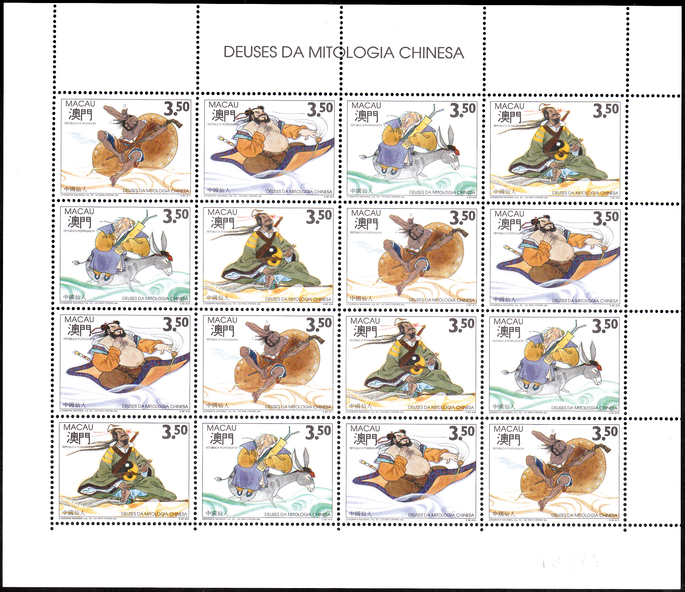 Am 3. April 1992 erschien eine Serie mit "Götter der chinesischen Mythologie". Hier eine Marke (MiNr 695) mit einer Abbildung zu Gott "T’it Kuai Lei".
