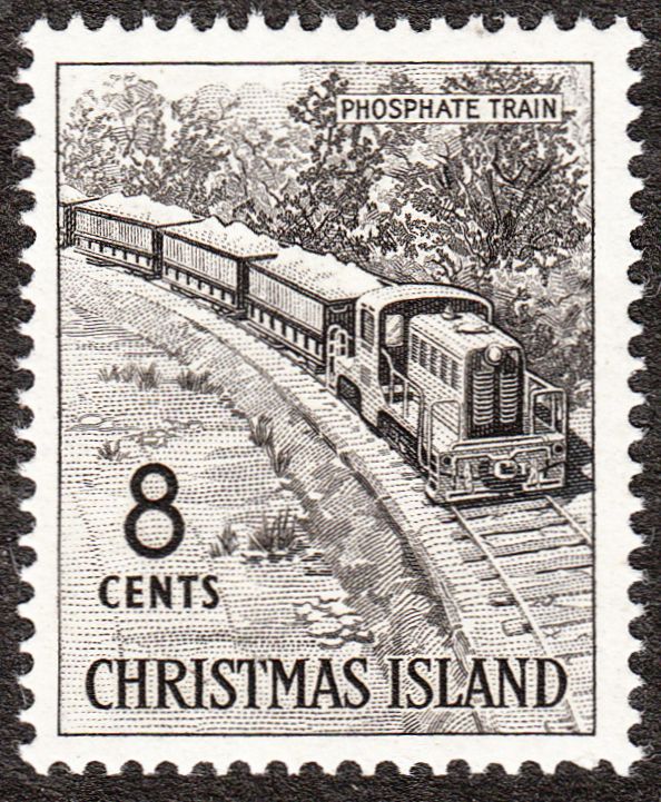 Die MiNr. 15 zeigt als Motiv "PHOSPHATE TRAIN" = einen Phosphatzug: