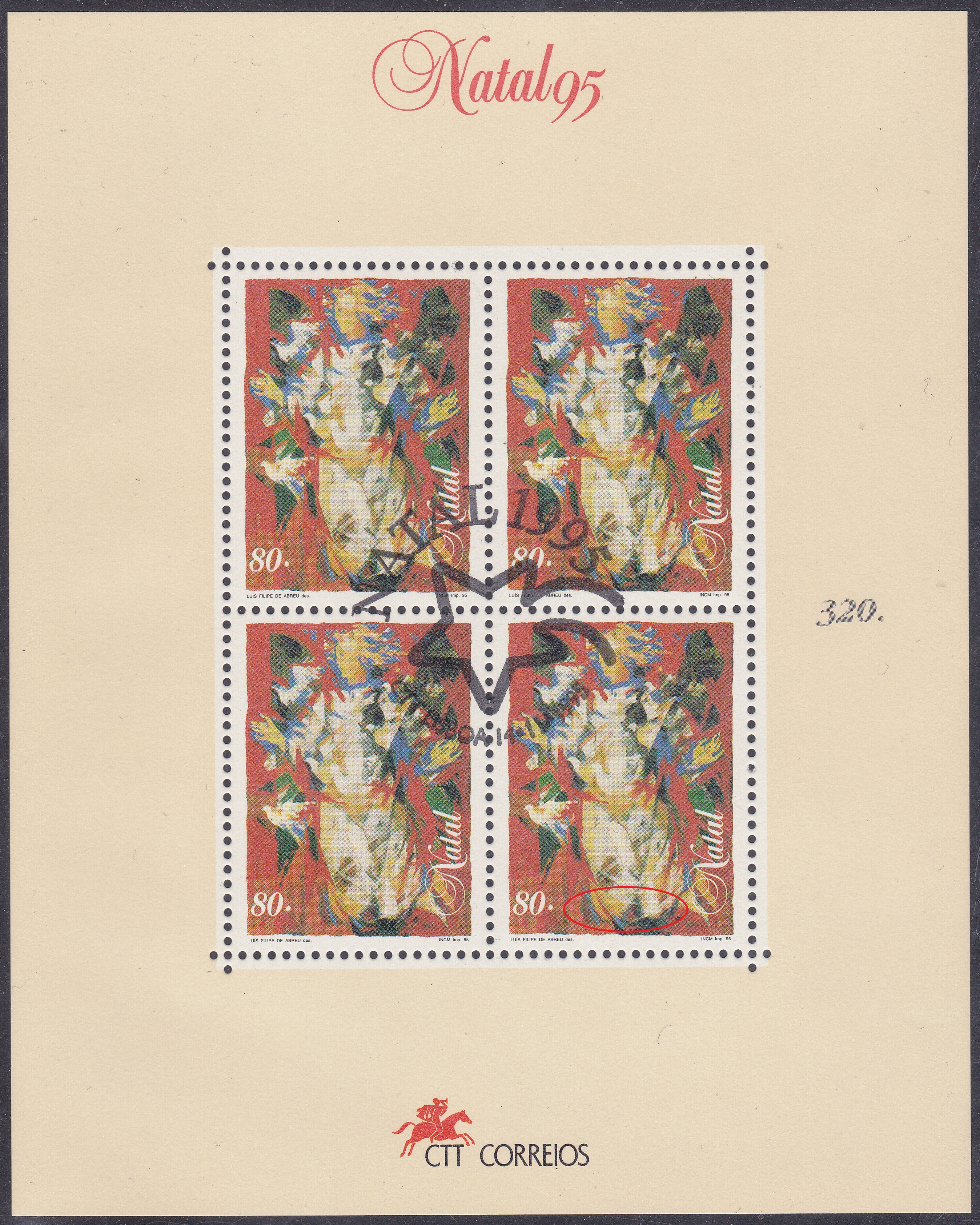 Auch dieser Block wurde mit dem Ersttagsonderstempel vom 14.11.1995 abgestempelt. Hier ein Exemplar mit Ersttagsonderstempel.
