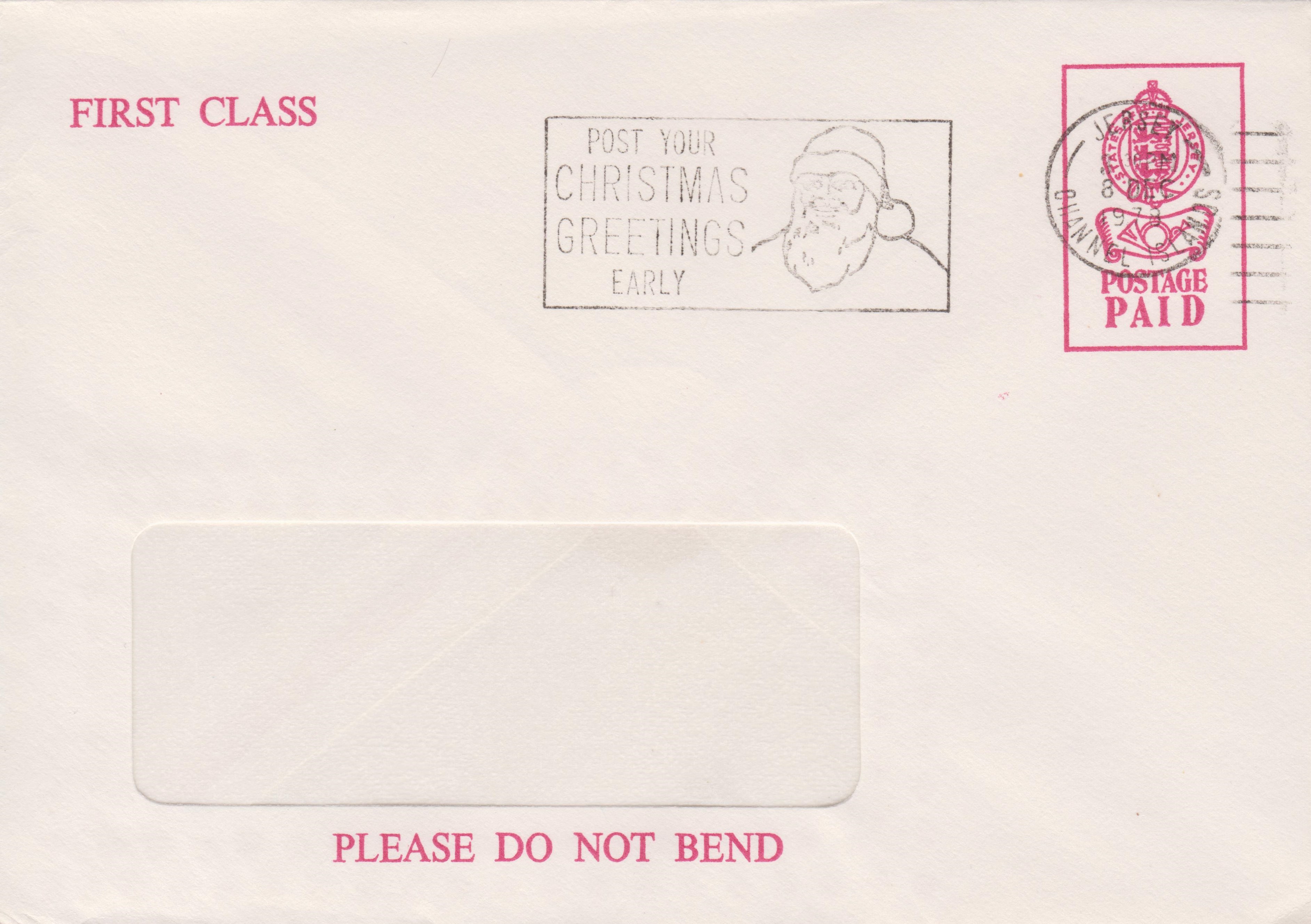 Ansichtskarte, adressiert nach Chile, frankiert am 10.12.2000 per Einzelfrankatur ATM MiNr. 3.2 der Wertstufe 200 Pf, entwertet mit Sonderstempel "24103 KIEL 1 - WEIHNACHTSBRIEFMARKENSCHAU":