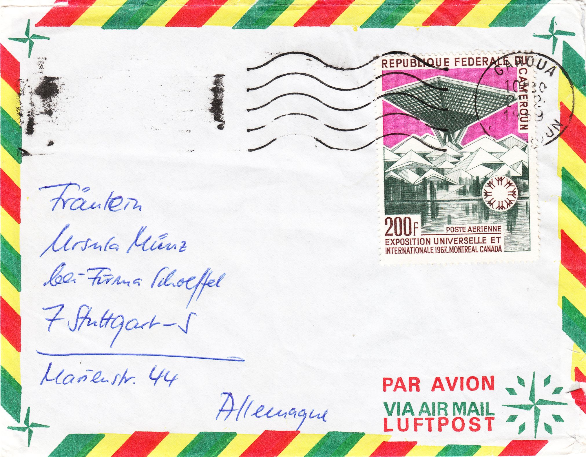Dieses Postwertzeichen aus Kamerun zeigt das Logo der Expo 67: