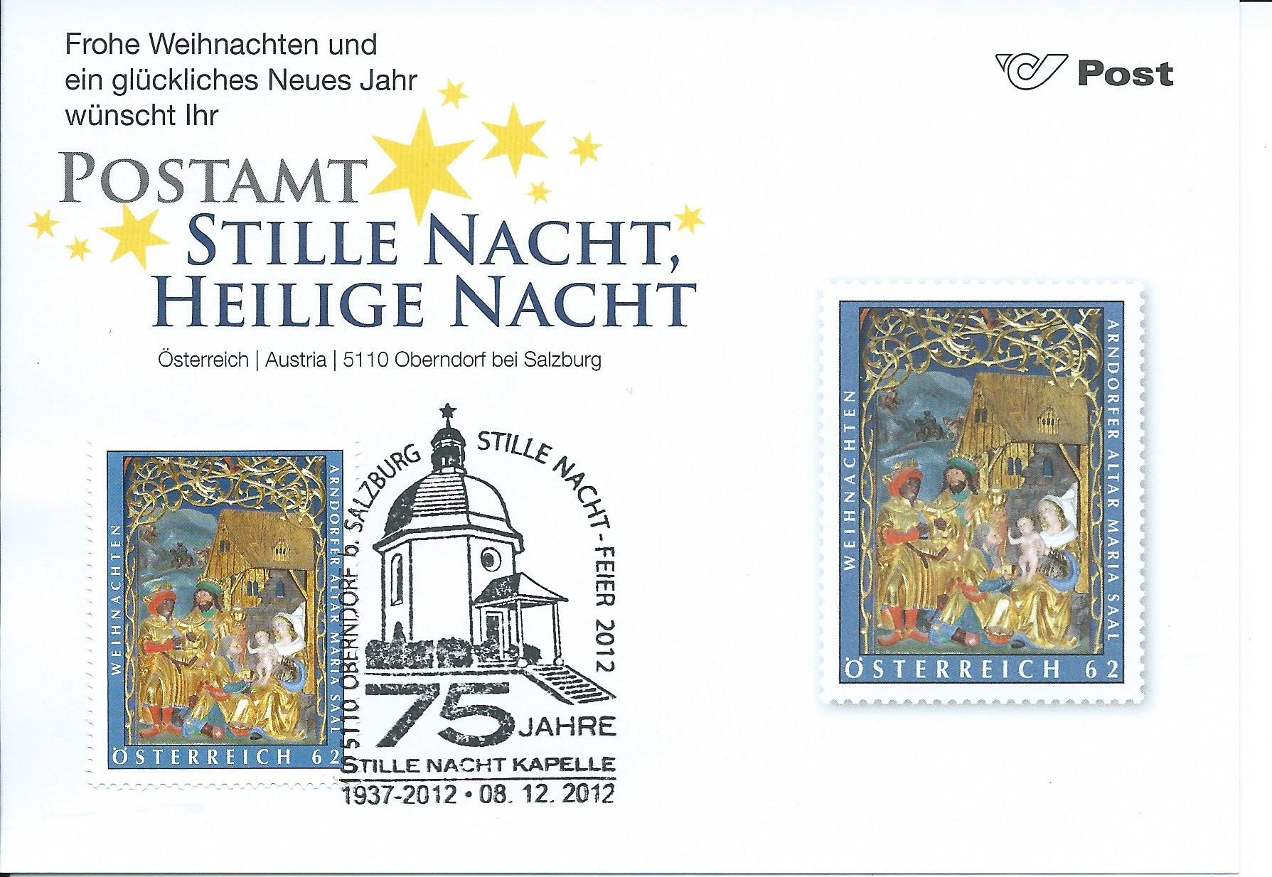 Es folgt ein Briefstück aus 2012 mit 3 verschiedenen Motiven, welche wieder in Oberndorf am 8.12.2012 mit dem passenden Sonderstempel gestempelt wurden.