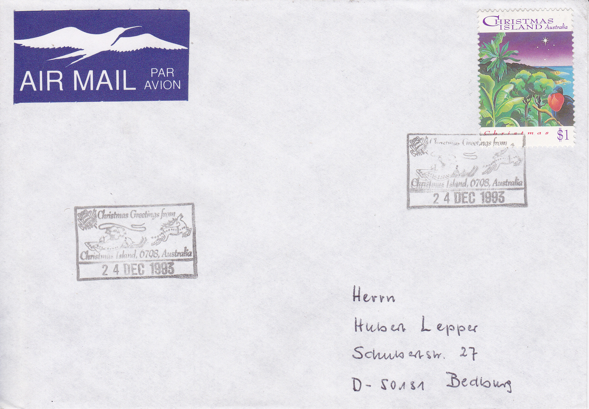 Die beiden Marken wurden am 27.11.1993 auf diesem Brief mit einem weihnachtliche Stempel entwertet.