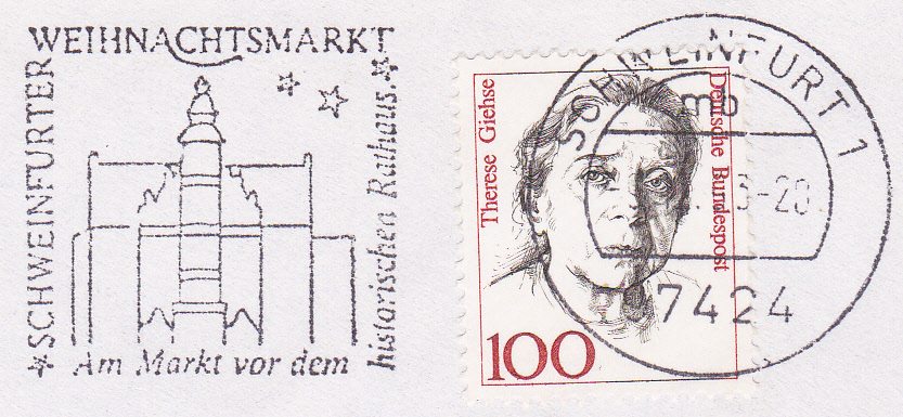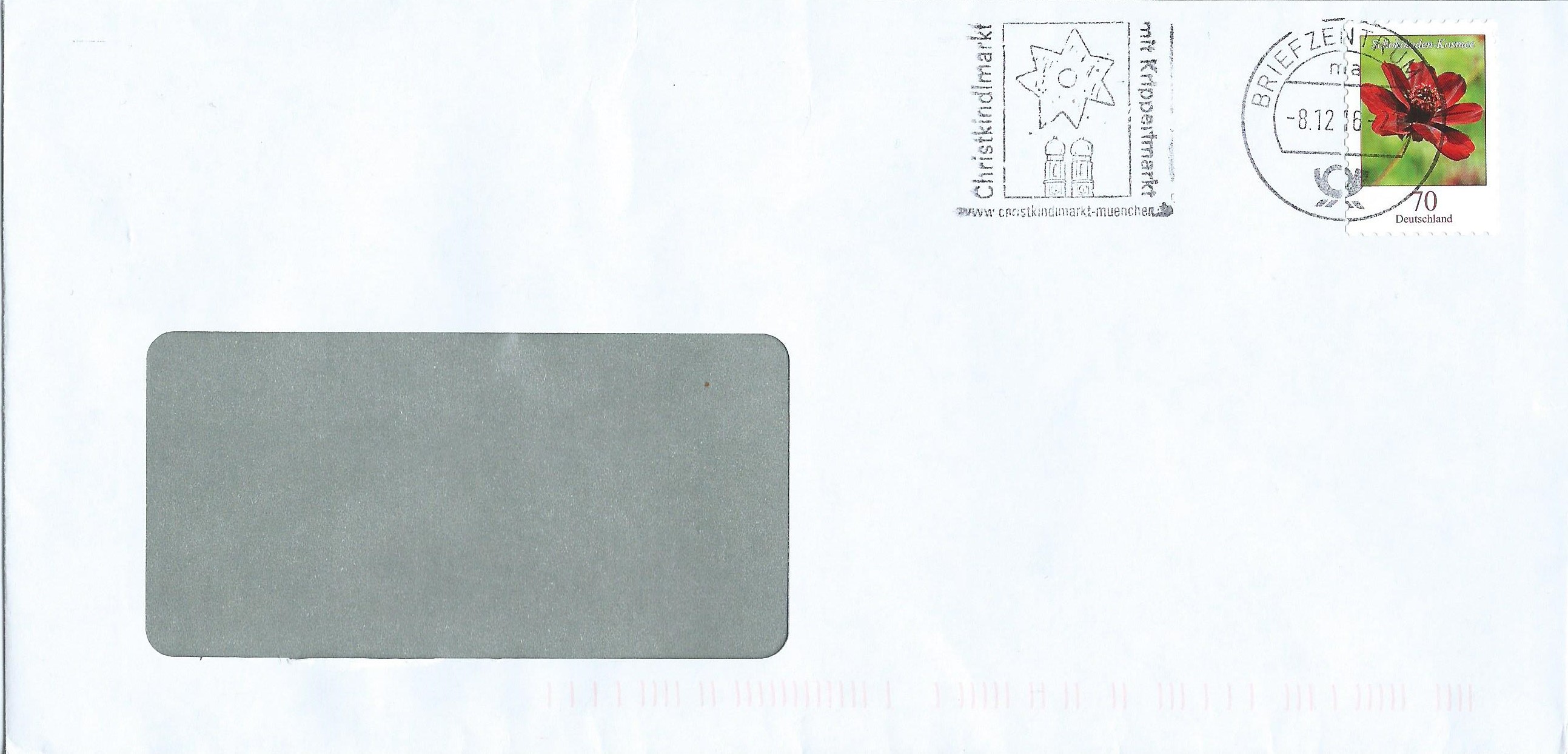hier habe ich einen Beleg vom Briefzentrum 80, welcher im Werbeeinsatz für den Christkindlmarkt mit Krippenmarkt in München wirbt. Abgestempelt ist er am 8.12.16.
