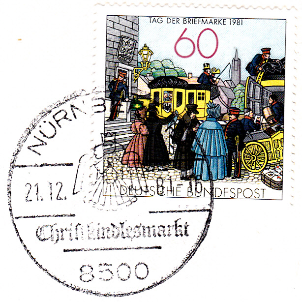 Sonderstempel zum 3- Sinsener Adventszauber am 10.12.2017. Im Stempelbild werden ein Binnenschiff auf dem Wesel-Datteln-Kanal und St. Nikolaus, der Schutzpatron der Seeleute, gezeigt.