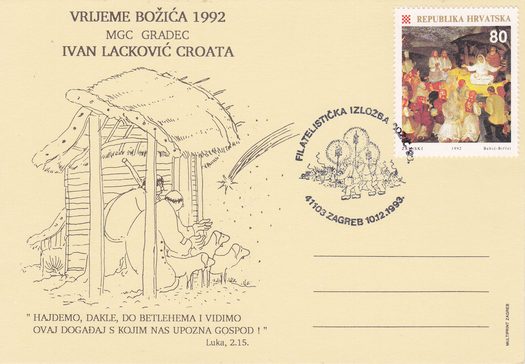 In Kroatien ist am 7.12.1992 diese Weihnachtsmarke (MiNr 218) mit der Abbildung des Gemälde "Weihnachten in Kroatien" von Ljubo Babic (1890-1974) erschienen.