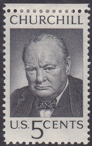 Zum Tode von Winston Churchill ist auch in den USA 1965 eine Marke (MiNr 880) mit einem Porträt von ihm erschienen.