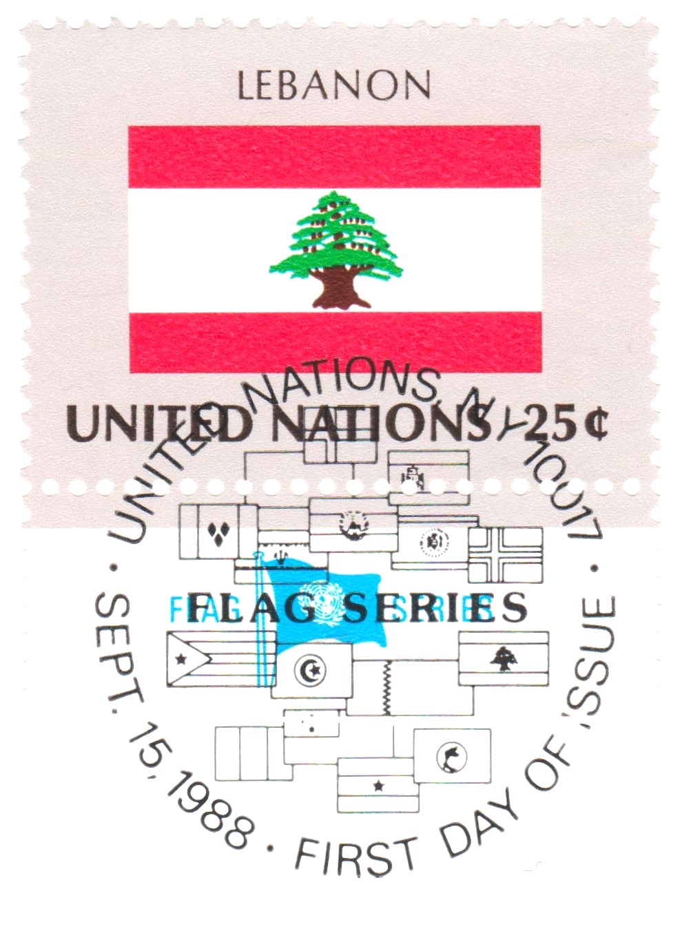 Vereinte Nationen MiNr. 556 zeigt die Flagge von LEBANON = LIBANON: