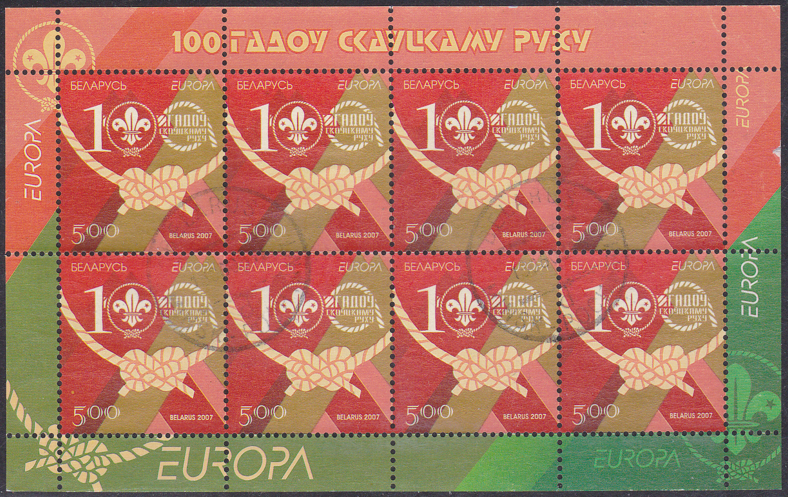 In Weißrussland erschienen am 4. Mai 2007 die Europamarken zum Gemeinschaftsthema "Pfadfinder". Hier eine gestempeltes Exemplar der Marke zu 500 Rubel mit der Abbildung eines Achterknoten. Die Auflage dieser Marke betrug 70 000 Stück.