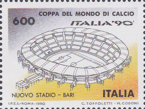 Diese Marke aus Italien (MiNr 2114) bildet das Stadio San Nicola in Bari ab.