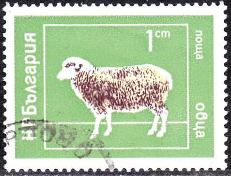 Aus Bulgarien kommt auch diese Marke (MiNR 2319) mit einem Schaf. Sie erschien in einer Serie "Haustiere".
