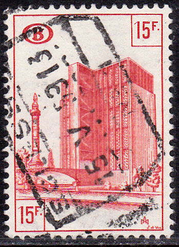 Diese Eisenbahnpaketmarke aus der Ausgabe von 1953/56 mit Abbildungen zur "Nord-Süd-Verbindung in Brüssel" in der Wertstufe zu 15 Franc mit der Abbildung "Brüssel, Kongress-Bahnhof" ist als MiNr 311 katalogisiert.