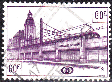 Diese Eisenbahnpaketmarke aus der Ausgabe von 1953/56 mit Abbildungen zur "Nord-Süd-Verbindung in Brüssel" in der Wertstufe zu 60 Franc mit der Abbildung "Bahnhof Chapelle" ist als MiNr. 316 katalogisiert.