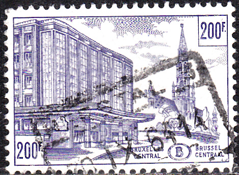 Diese Eisenbahnpaketmarke aus der Ausgabe von 1953/56 mit Abbildungen zur "Nord-Süd-Verbindung in Brüssel" in der Wertstufe zu 200 Franc mit der Abbildung "Brüssel Zentral-Bahnhof " ist als MiNr. 319 katalogisiert.