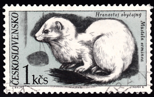 Aus der Tschechoslowakei kommt diese Marke (MiNr 1733) mit einem Hermelin (Mustela erminea).