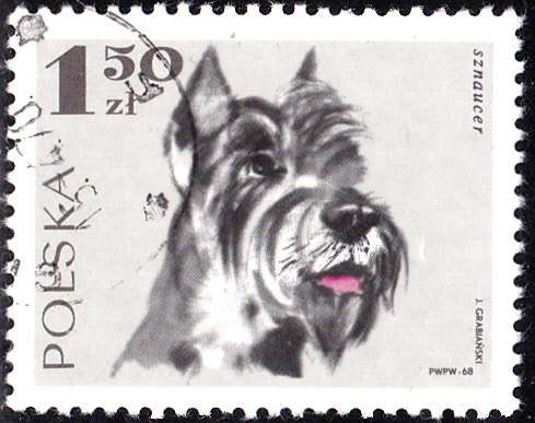 Es folgt hier eine Marke aus Polen (MiNr 1901) mit dem "Porträtbild" eine Schnauzer.