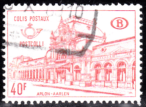 Diese Postpaketmarke zu 40 Francs mit der Abbildung "Bahnhof Arlon" erschien 1967 und wird unter der MiNr 63 katalogisiert.