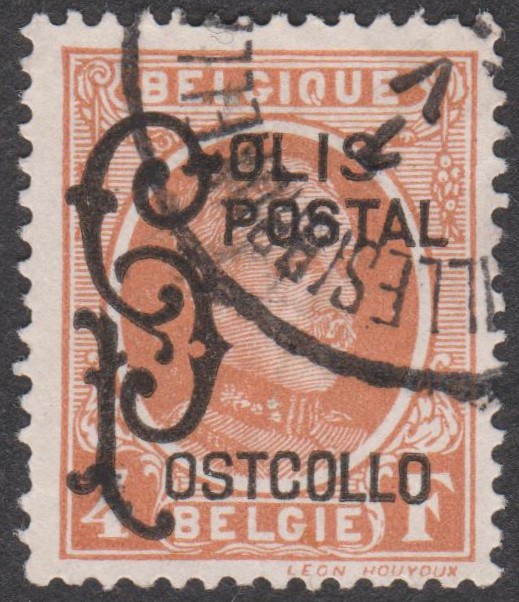 Die von LEON HOUYOUX entworfene Freimarke "König Albert I." der Wertstufe 4 F in der geänderten Farbe orangebraun wurde mit einem schwarzen Aufdruck "COLIS / POSTAL / POSTCOLLO" versehen.