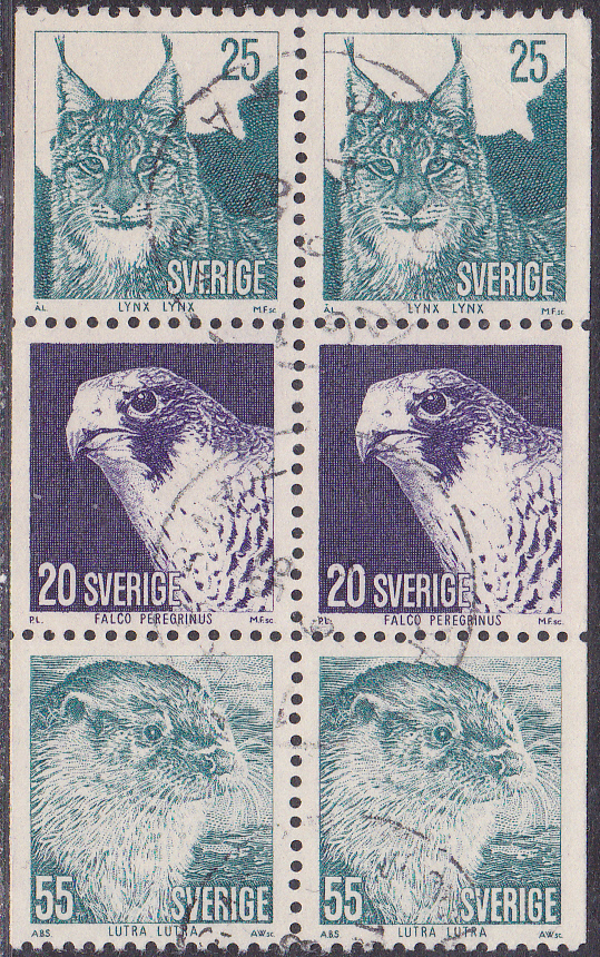 In Schweden ist 1973 in einem Markenheftchen "Tierschutz" eine Marke mit der Abbildung eines Luchses (Lynx lynx) erschienen. Hier ein Paar aus diesem Heftchen (MiNr 822 yDl / 822 yDR). Die Marke gibt es in zwei Papierarten: x = normales Papier, y = Papier fl.