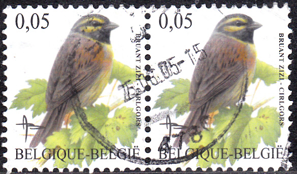 Auf dieser Marke aus Belgien (MiNr 3427) ist eine Zaunammer (Emberiza cirlus) zu sehen.