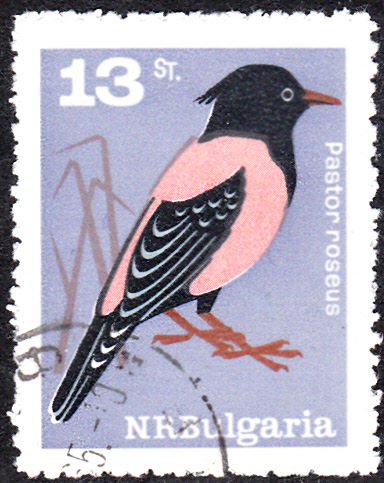 Auch auf dieser Marke aus Bulgarien (MiNr 1335) wird eine Rosenstar (Sturnus roseus) gezeigt.