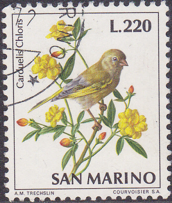 In einer Serie ist in San Marino auch eine Marke mit einem Grünling (Carduelis chloris) erschienen.