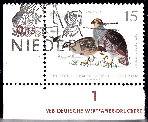 Aus der Schweiz kommt diese Marke (MiNr 2099) mit einem Steinhuhn (Alectoris graeca).