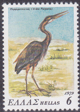 Dieser Purpurreiher (Ardea purpurea) kommt aus Griechenland (MiNr 1372).