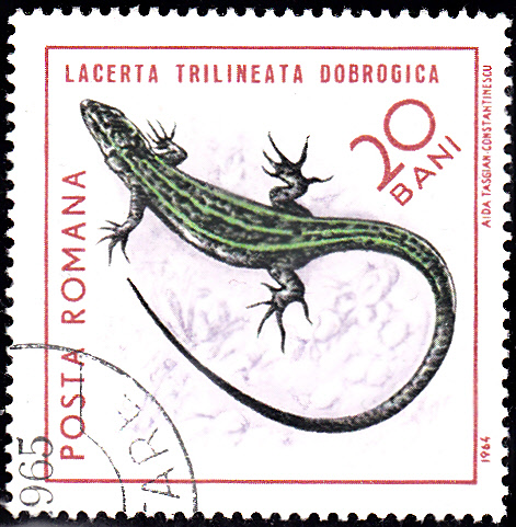 In einer Serie "Reptilien" erschien in Rumänien eine Marke (MiNr 2378) mit der Abbildung einer Taurischen Eidechse (Podarcis taurica). Die Marke trägt das Ausgabejahr "1964" ist aber erst 1965 erschienen.