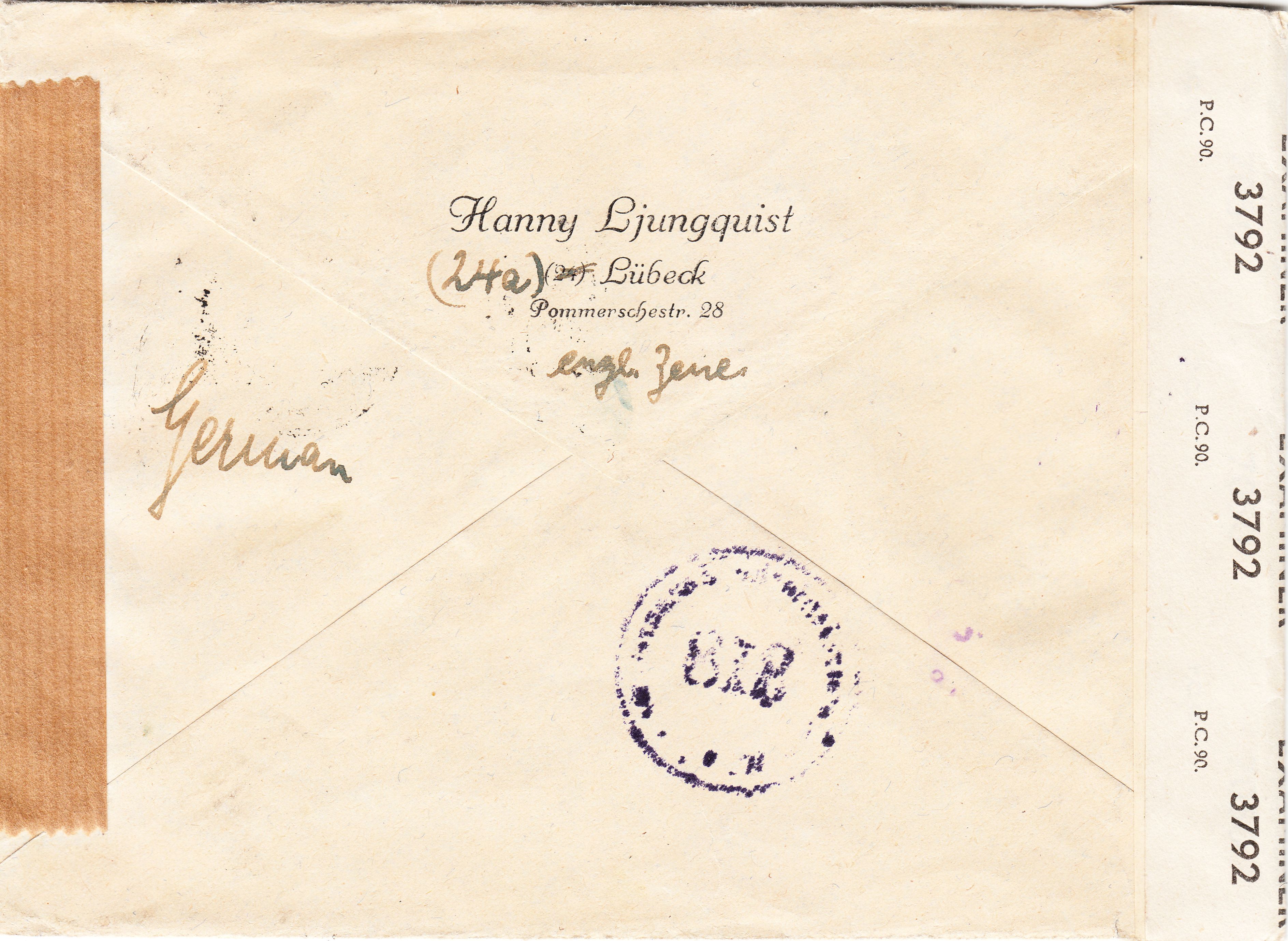 Dieser nach Wien adressierte, am 04.02.1947 in Lübeck aufgegebene Brief lief durch die britische Zensurstelle in Hamburg, wo er zweimal linksseitig geöffnet und per Verschlußzettel wieder verschlossen wurde: