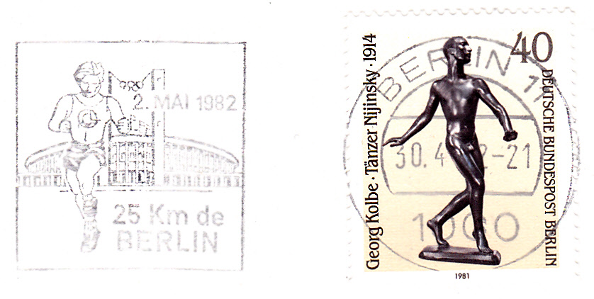 Maschinenwerbestempel Berlin 11 vom 30.4.1982 mit einem Werbeeinsatz "2. Mai 1982 25 Km de Berlin".