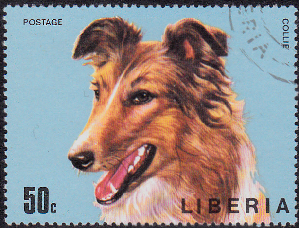 In der DDR ist diese Marke (MiNr 2158) mit einem Langhaarcollie erschienen.