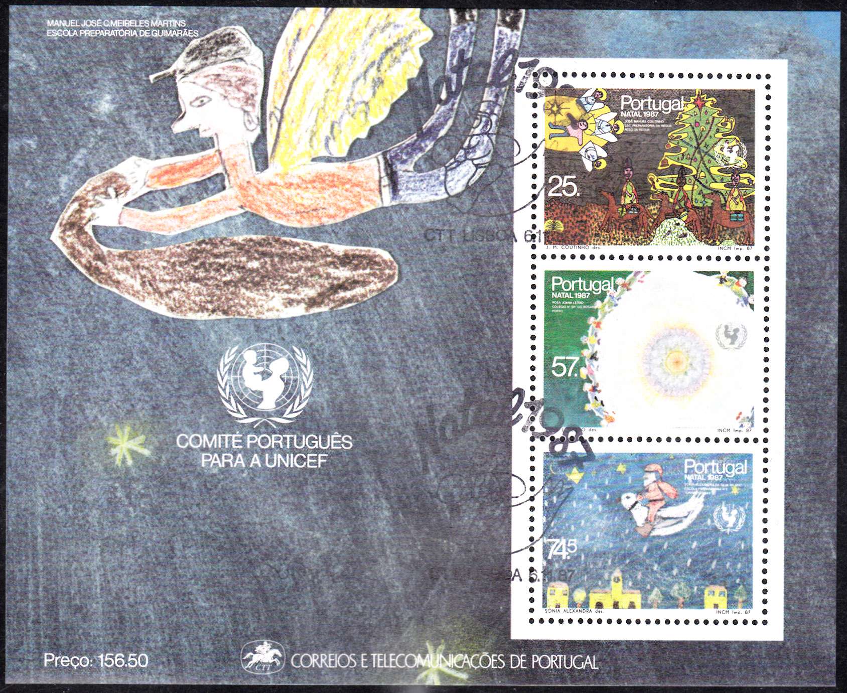 Auch die Weihnachtsmarke 1987 aus Portugal zeigen Kinderzeichnungen.