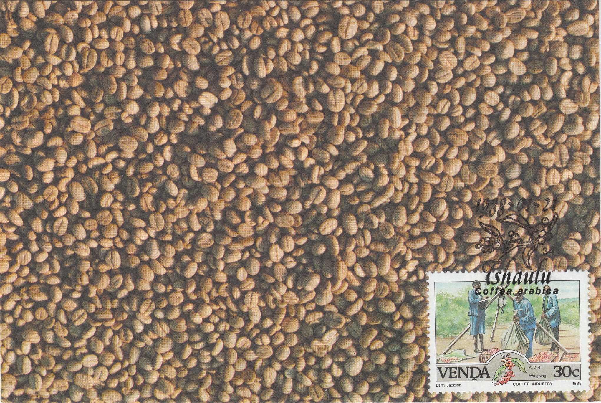 Hier eine Maximumkarte einer Ausgabe vom 21.01.1988 zum Thema "Verwiegung von Rohkaffee":