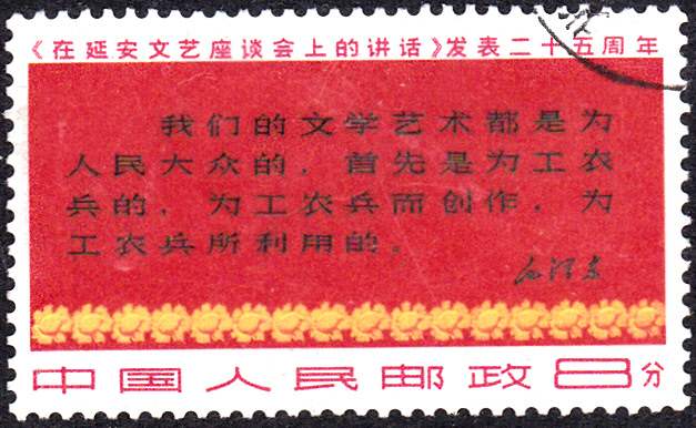 Zum "25. Jahrestag der Veröffentlichung von Mao Zedongs Reden vor dem Yenan-Forum über Literatur und Kunst" erschien am 23.5.1967 in der Volksrepublik China eine Serie mit drei Marken.