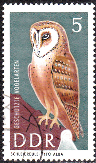 Eine weitere Schleiereule (Tyto alba) wird auf dieser Marke aus der DDR (MiNr 1272) abgebildet.