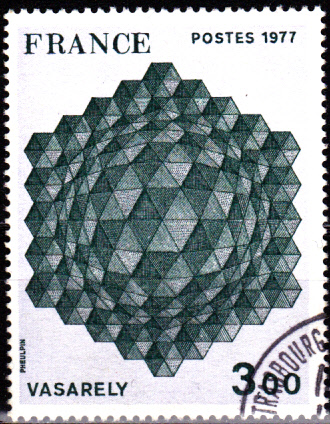 Auf dieser Marke aus Frankreich (MiNr 2022) sehen wir das Gemälde mit dem Namen " In Sechseck integrierte Kugel".