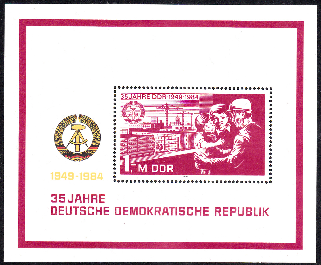 Auf dieser Marke aus der Schweiz (MiNr 1495) zum Thema "100 Jahre Internationaler Metallgewerkschaftsbund (IMB)" zeigt zwei Metallarbeiter mit Schutzhelm.